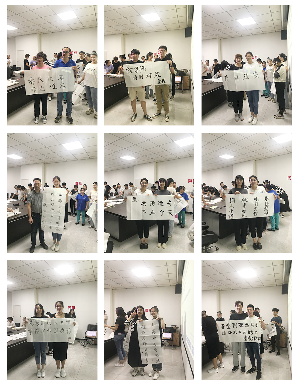 第二個環(huán)節(jié)是徒弟為師父寫一幅字,表達對師父的感恩與敬意。在此期間師父與徒弟共同完成書法,徒弟將書法雙手獻給自己的師父,并與師父合影留念。濃濃的師徒情誼感染了在場的每一個人。相信在以后的工作中也定會師徒齊心,完成前方的困難與挑戰(zhàn)。