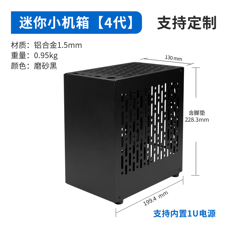 我們針對前幾款小機箱的特點,工程師此次研發出了四代小機箱,它不僅可以裝配內置1U電源,同時還搭配了前置的usb和音頻接口,日常使用非常的方便。